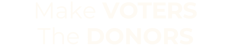Politicians listen only to the donors who fund their expensive campaigns. They have little to offer us besides empty slogans and ugly attacks on their opponents. The solution? Make ourselves the donors and restore government by the people.